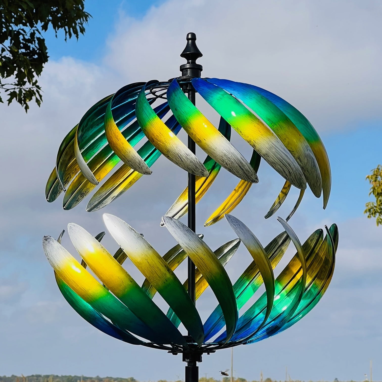 Cree un hermoso jardín lleno de color gracias a nuestro molino de viento decorativo para jardín modelo Villandry, este molino de viento decorativo para jardín se integrará a la perfección en su parque o en un macizo de flores y aportará color incluso durante los largos meses de invierno. Esta escultura cinética está compuesta por dos semicírculos que giran en sentidos opuestos creando un magnífico efecto óptico. El robusto mástil cuenta con tres garras para anclarlo 24 cm en el suelo, lo que le permite soportar las ráfagas de viento más fuertes.